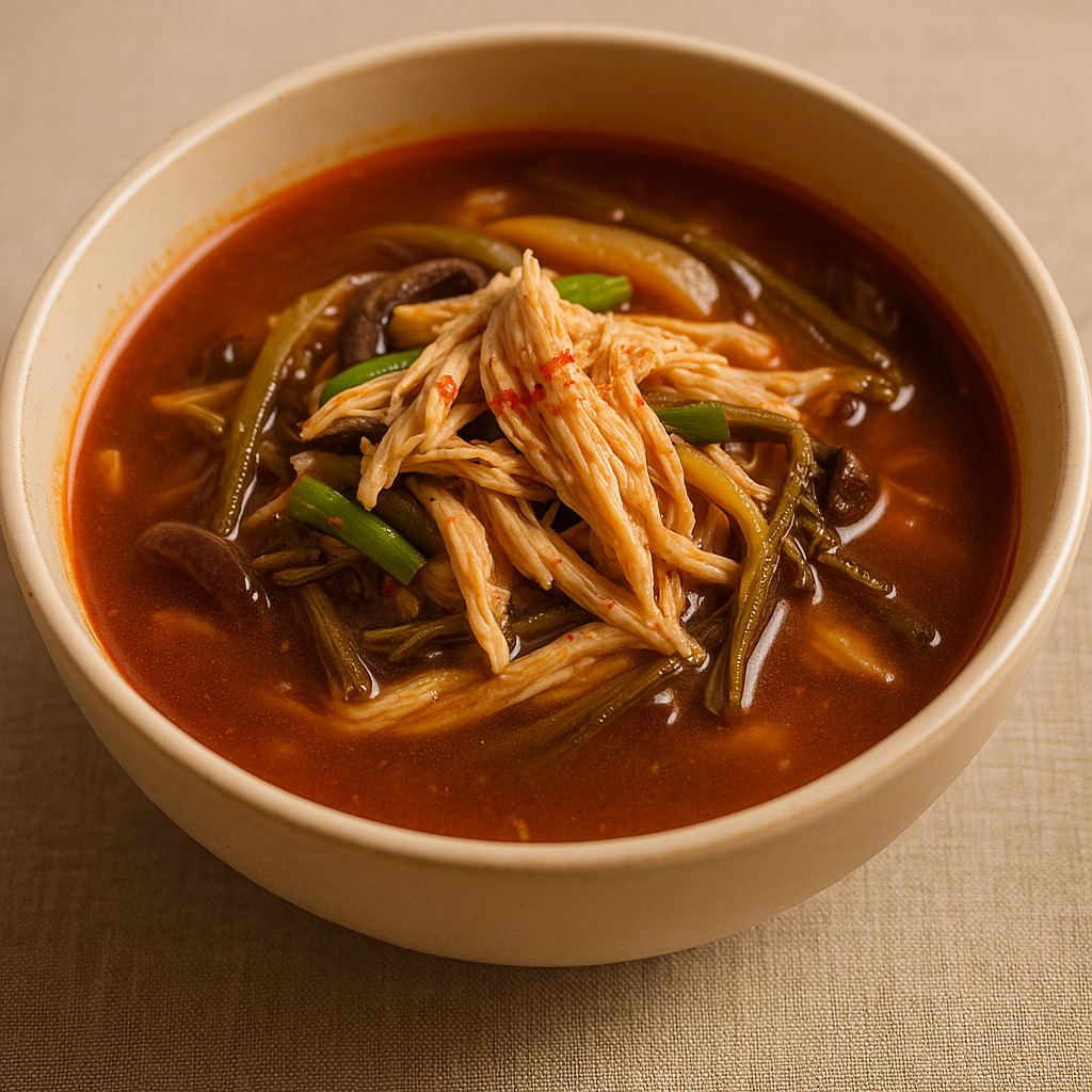5️⃣ 생강 듬뿍 닭개장 (라이트 버전) — 속이 확 풀리는 얼큰함