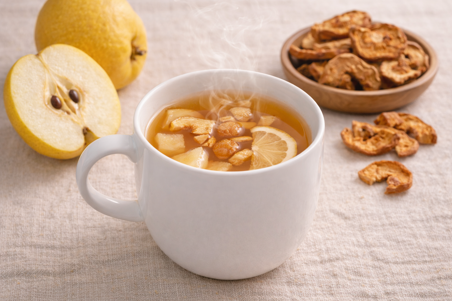 배도라지와 생강차가 이미 준비되어 있다면, 이번엔 '모과'를 곁들여보세요. 모과는 폐를 보호하고 기침을 멈추게 하는 데 탁월합니다.