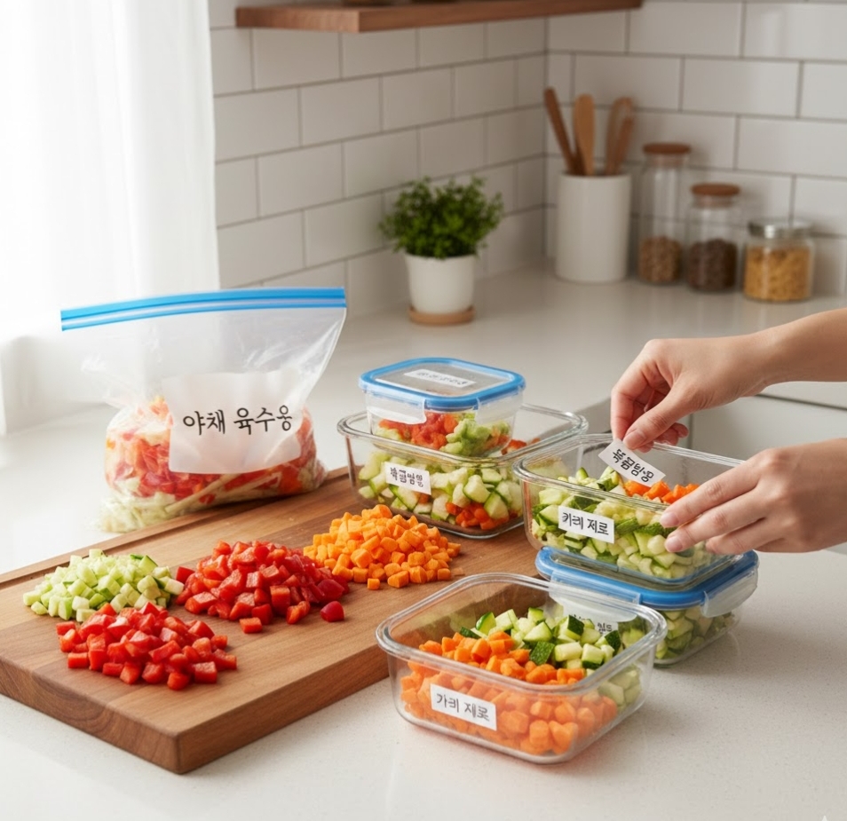 주말에 요리하고 남은 애호박, 당근, 양파, 버섯... 그냥 냉장고에 넣어두면 평일에 바빠서 결국 시들거나 썩어서 버리게 되는 경우가 많죠. 이 자투리 채소들을 일요일 저녁에 미리 손질해두면 다음 주 식단이 훨씬 풍성해지고 식비도 절약됩니다.