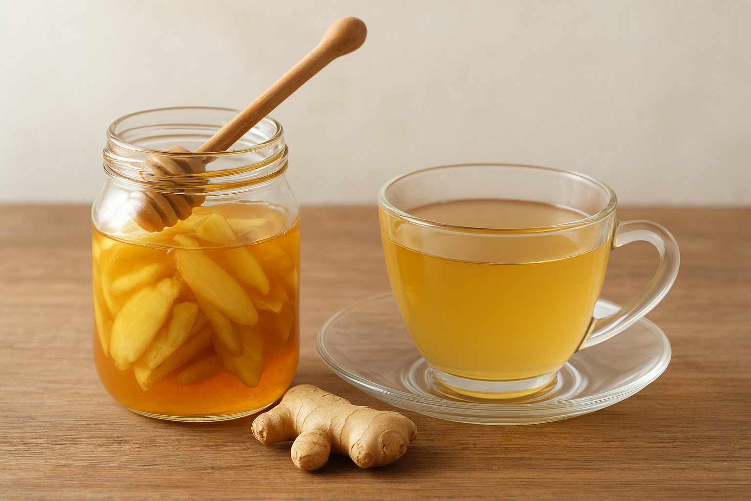 따뜻한 생강차에 꿀을 살짝 넣으면