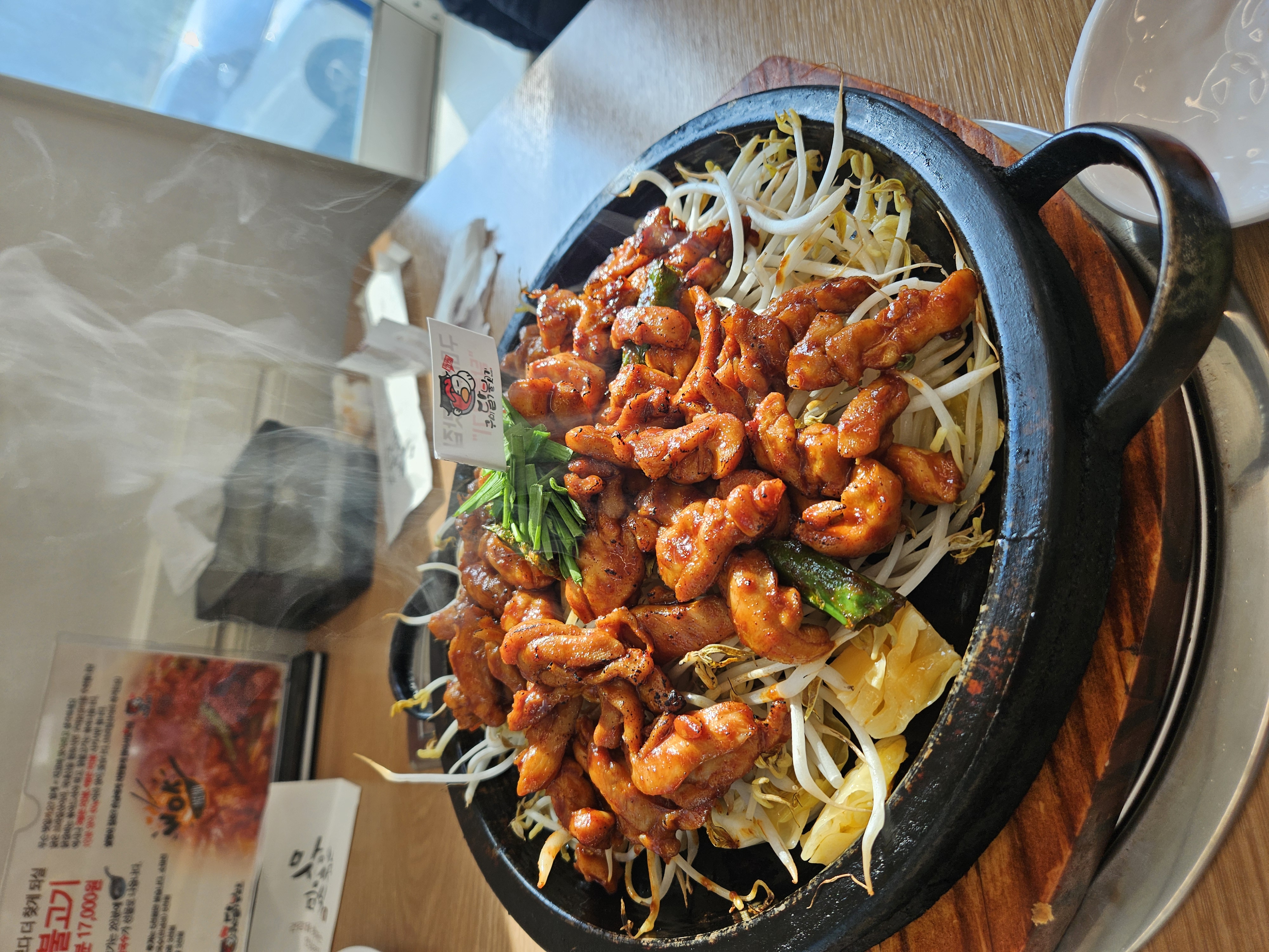 주문하자마자 철판 위에 닭불고기가 올라갔는데