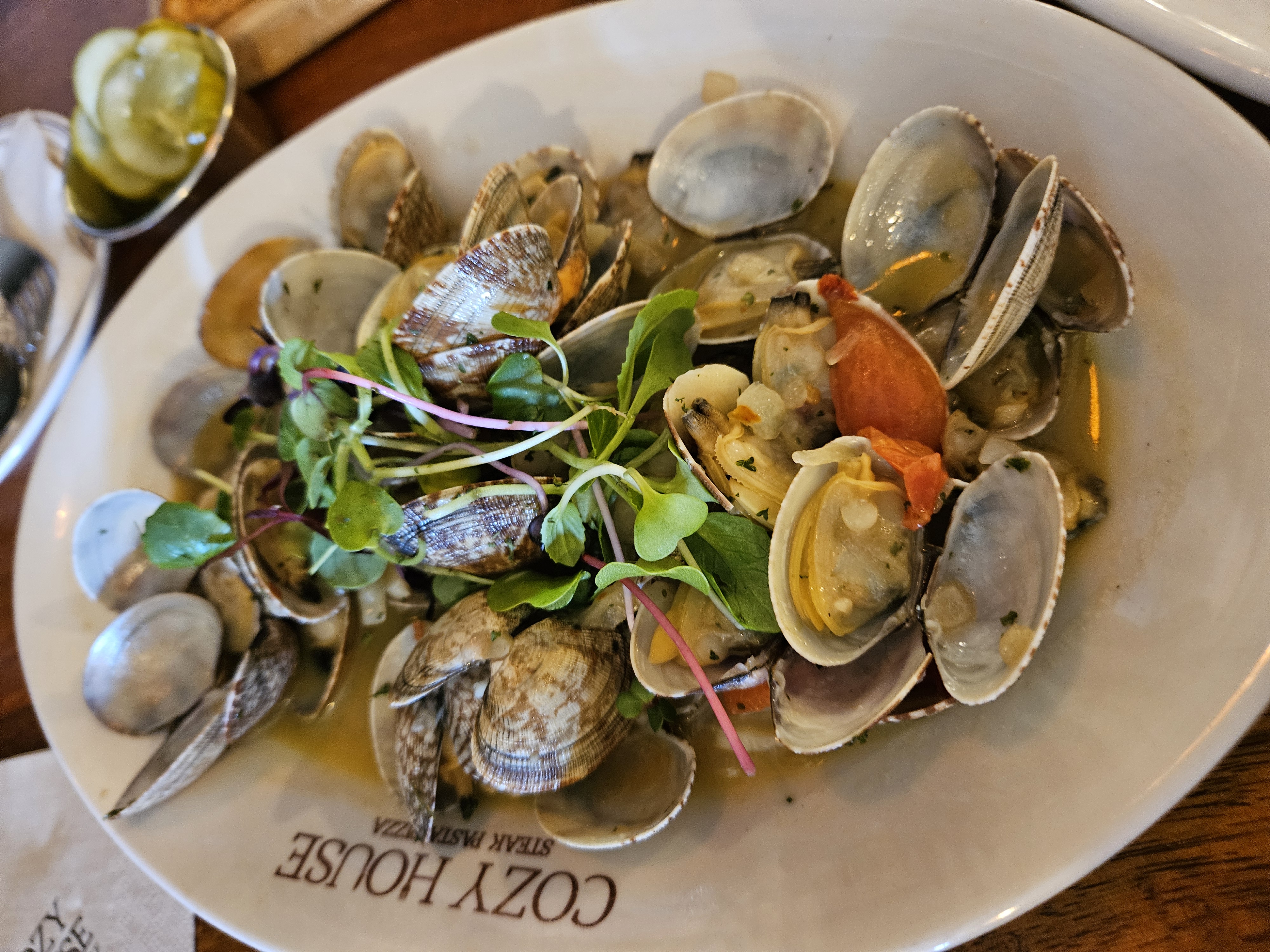 화이트와인과 버터로 졸여낸 바지락 버터찜은 향긋한 풍미가 매력적이에요.