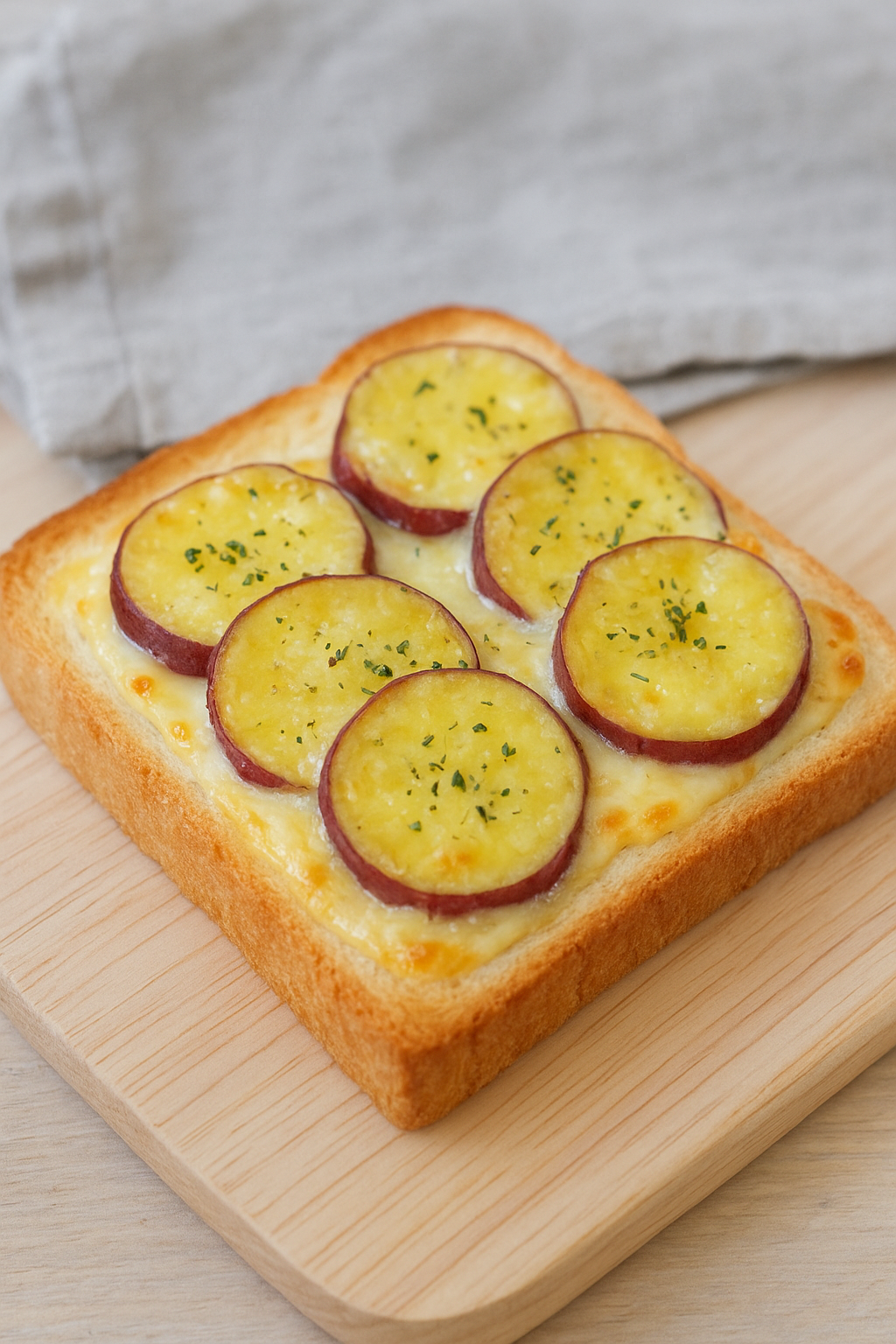 토스트 위에 고구마와 치즈만 올려도 작은 피자가 완성됩니다.