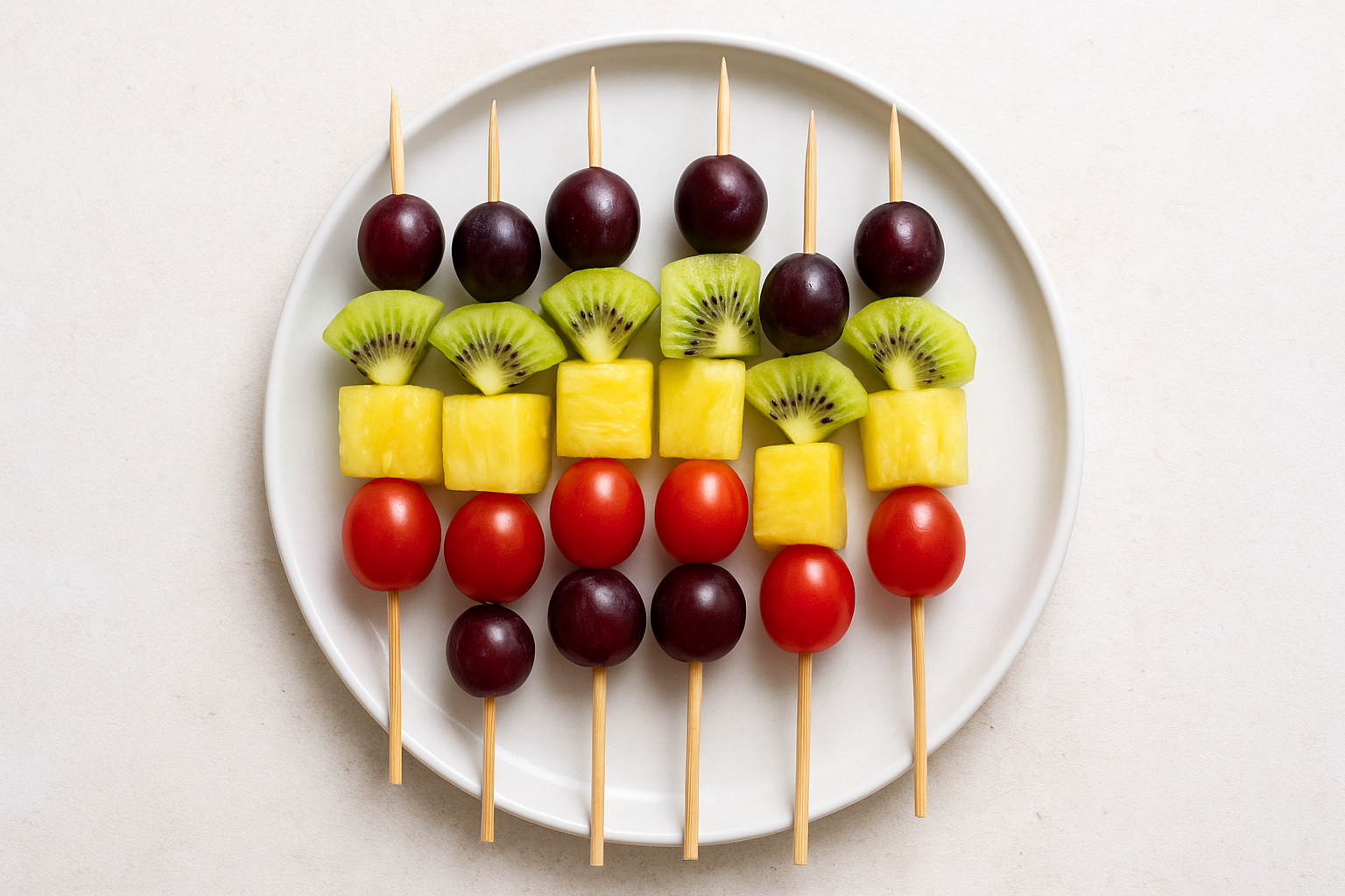 제철 과일로 알록달록 예쁘게 만드는 꼬치 간식이에요.