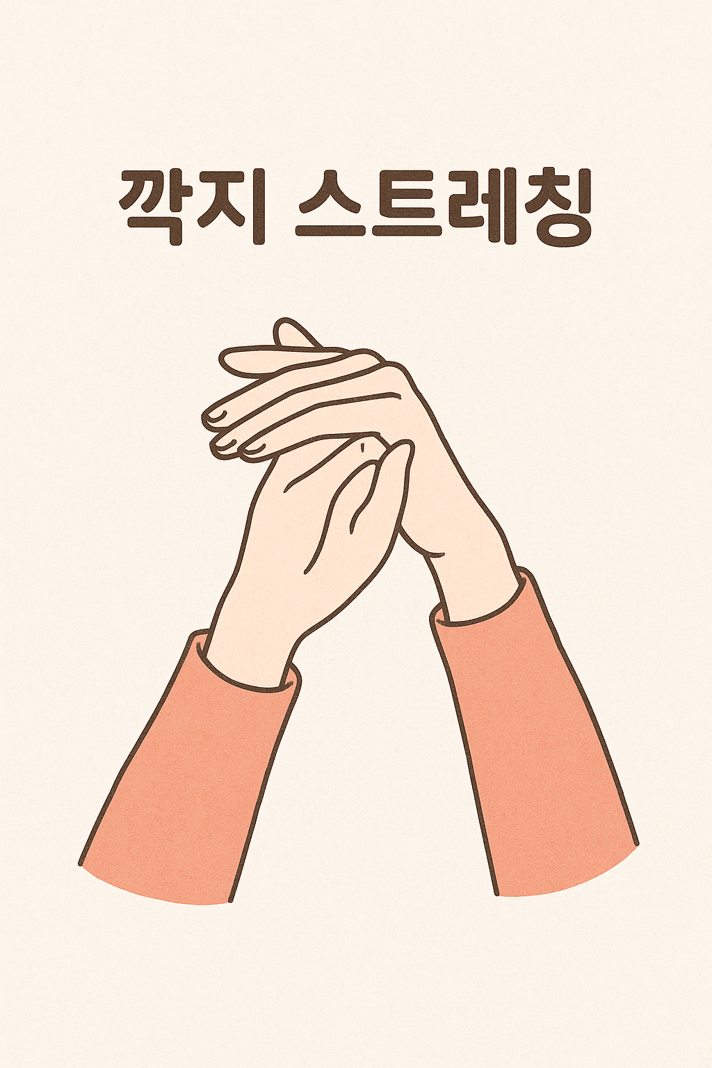 3. 깍지 스트레칭 : 두 손을 깍지 껴 앞으로 쭉 뻗어 시원하게 늘려주기