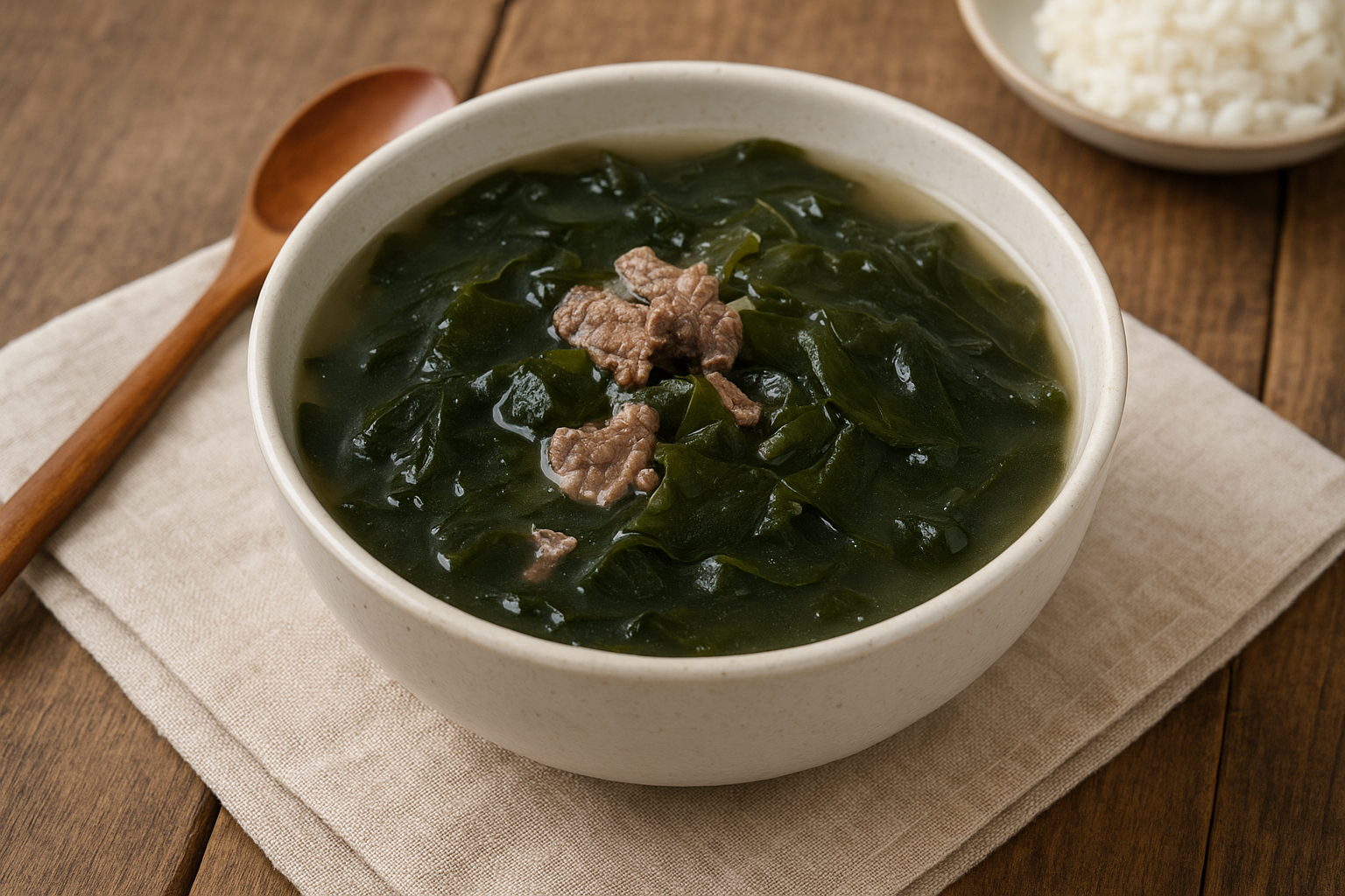 미역을 불려 바다 향이 살아나고, 소고기를 푹 끓여낸 국물은 깊고 담백합니다.